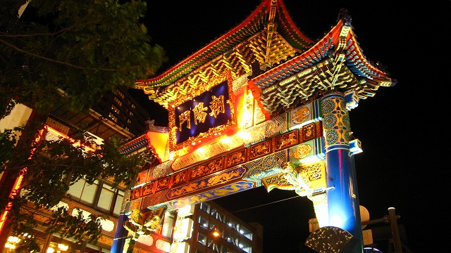 (中華街の門、中華街の様子、肉まん、赤レンガ、夜景)